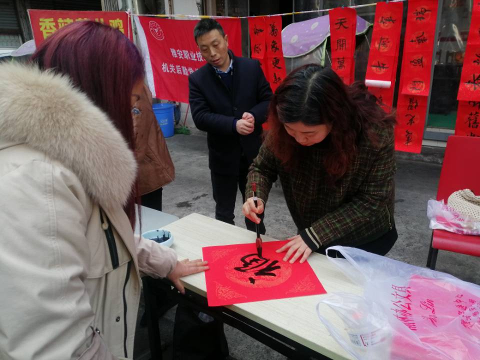 岁末年初,春节将至,为了弘扬中华优秀传统文化,丰富广大职工和市民的精神文化生活,学院工会提前安排采买笔墨和红纸,组织招生就业处处处长宋峰、师范学院党总支副书记陆小路和钟宏颖3位教师,发挥特长,开展“送万福、进万家”书法公益活动。