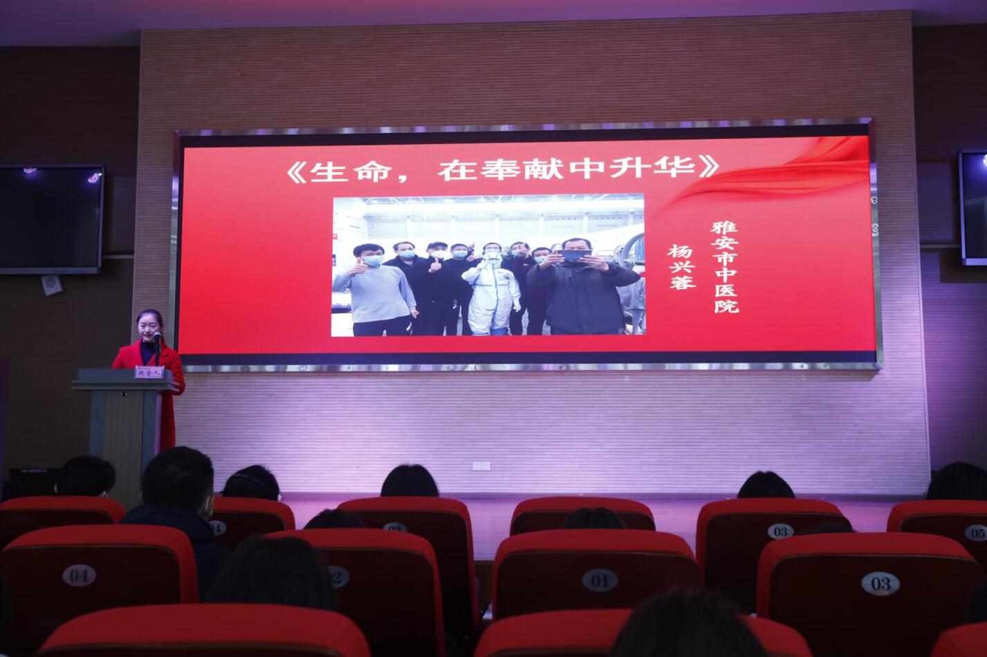 来自四川大学华西医院的2010级护理专业毕业生彭云耀、陈进东,来自雅安市人民医院的2007级护理专业毕业生李涯霖,以及来自雅安市中医院的2006级护理专业毕业生杨兴蓉分别以《但行好事,莫问前程》、《心之所向,行则必至,在平凡的职业中把握自己的未来》、《护理,我爱了》、《生命,在奉献中升华》为题分享了各自在抗疫期间的所见所闻所感和人生感悟,表达了对学弟学妹的期望以及对学院和老师们的感谢;解雪连以 《坚守护理初心,做一个在危难时刻站出来的平凡人》为题,讲述了自己为落入粪坑的小男孩进行急救使其生命脱险和参加疫情防控志愿服务的经历。五位校友都不约而同地表示:希望国泰民安,但如果以后遇到同样的事,依然会践行初心使命,毅然决然地奔赴“战场”。感人的故事、动人的事迹、崇高的精神,催人奋进,参加人员备受鼓舞,会场中时时响起热烈的掌声。