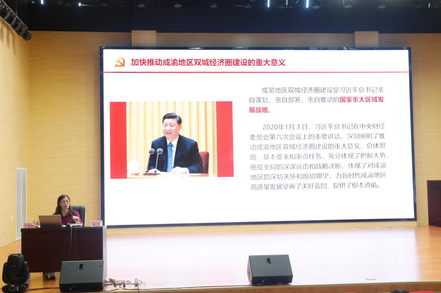 雷厉副教授、王坤容老师聚焦省市全会主题,主要就省委十一届七次全会和市委四届八次全会精神的重大意义、决策部署从国家、成渝地区、四川、雅安四个层面进行了详细讲解,以丰富的事例、详实的数据,深入浅出地向师生阐述了四川、雅安“怎么看”“怎么干”等问题。报告启迪思维、令人倍感振奋,师生们认真聆听,不时地做着记录。