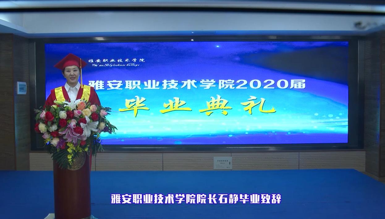 院长石静在题为《2020,让记忆寄语未来》的毕业致辞中,对同学们提出殷切期盼,希望同学们做一个心中有理想,手中有本领,肩上可担当的人:爱国爱家责任担当,做个有情怀的人;追逐梦想奔涌向前,做个有梦想的人;提升价值奉献社会,做个有用的人。“你们在最美的时光遇见雅职院,不管你们走到哪里,雅职院永远是你们的家。”