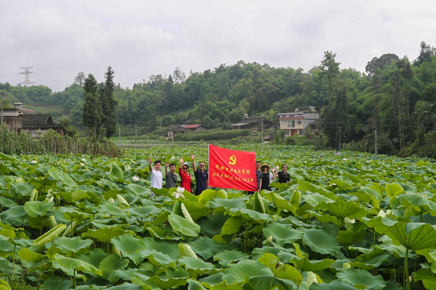 天全县仁义镇小落村是学院精准扶贫对口帮扶点,近年来学院通过一系列产业帮扶措施使小落村由贫困村发展成为产业村,村容村貌得到明显改善,村集体经济增长和贫困户增收得到有效提升。党员同志们来到现场,实地参观了小落村“荷田+”立体种养殖产业基地、蔬菜种植基地、文化室、卫生室、文化墙等建设情况,了解了学院精准扶贫帮扶成效。