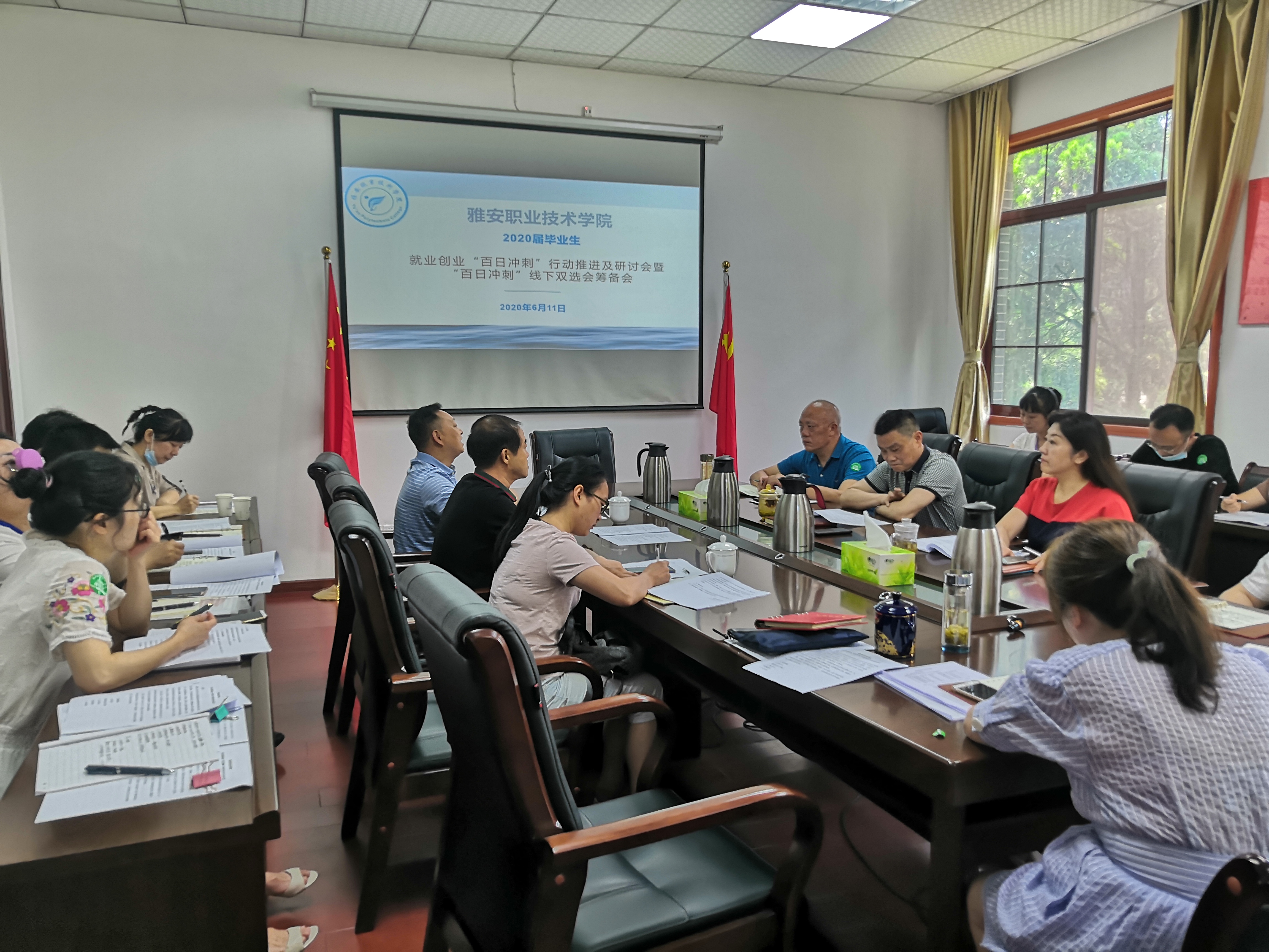 6月11日上午,学院在育才路校区B210召开2020届毕业生就业创业“百日冲刺”行动推进及研讨会暨“百日冲刺”线下双选会筹备会,学院党委书记李春模、院长石静出席会议,各二级学院就业工作负责人及相关部门负责人参会,会议由学院党委委员宋立智主持,雅安市疾控中心主任杨雅康、副主任周启富到会指导。