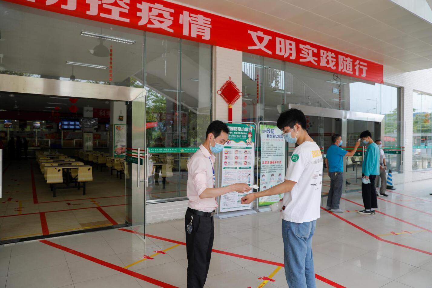 在学生食堂,体温检测、消毒洗手,一个都不少。就餐的同学说:“感谢食堂准备的可口饭菜,让我们有了家的感觉,学院的防疫措施也让我们感到很安心。”返校前,食堂抓实抓细疫情防控工作,精心设计菜谱,让同学们能在返校后吃到营养美味的套餐。