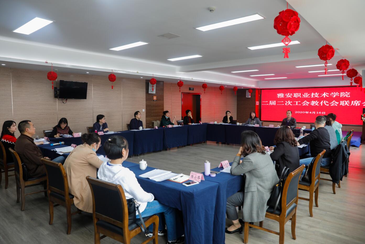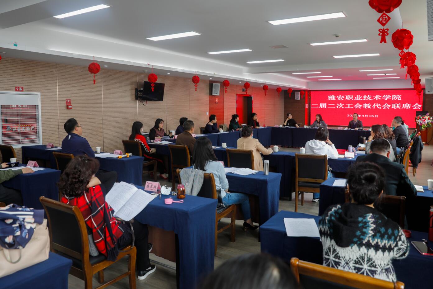 4月17日下午,学院工会委员会在青年路校区培训楼集雅厅会议室,召开工会教代会二届二次联席会,就《Beat365唯一官方网站教职工目标绩效考核指导意见 (试行)》、校歌歌词《扬帆追梦》进行讨论审议。工会委员、教代会专委会主任、代表团团长、工会小组长、相关职能部门负责人30余人参加会议。学院党委副书记、工会主席付洪涛主持会议。