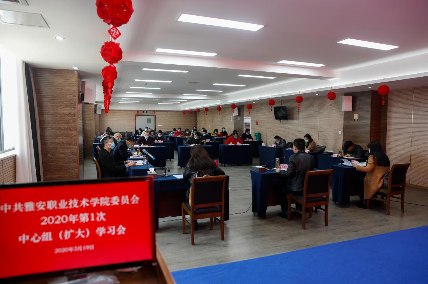 3月19日下午,学院党委在青年路校区培训中心集雅厅会议室召开2020年第一次党委中心组(扩大)学习会,深入学习贯彻习近平总书记有关统筹推进新冠肺炎疫情防控系列重要讲话精神,进一步提高认识、统一思想,明确责任、强化措施,确保统筹抓好学院疫情防控和教育教学工作。学院党政领导班子成员、党委职能部门负责人、党总支(直属党支部)书记、副书记参加学习。学习会由党委书记李春模主持。