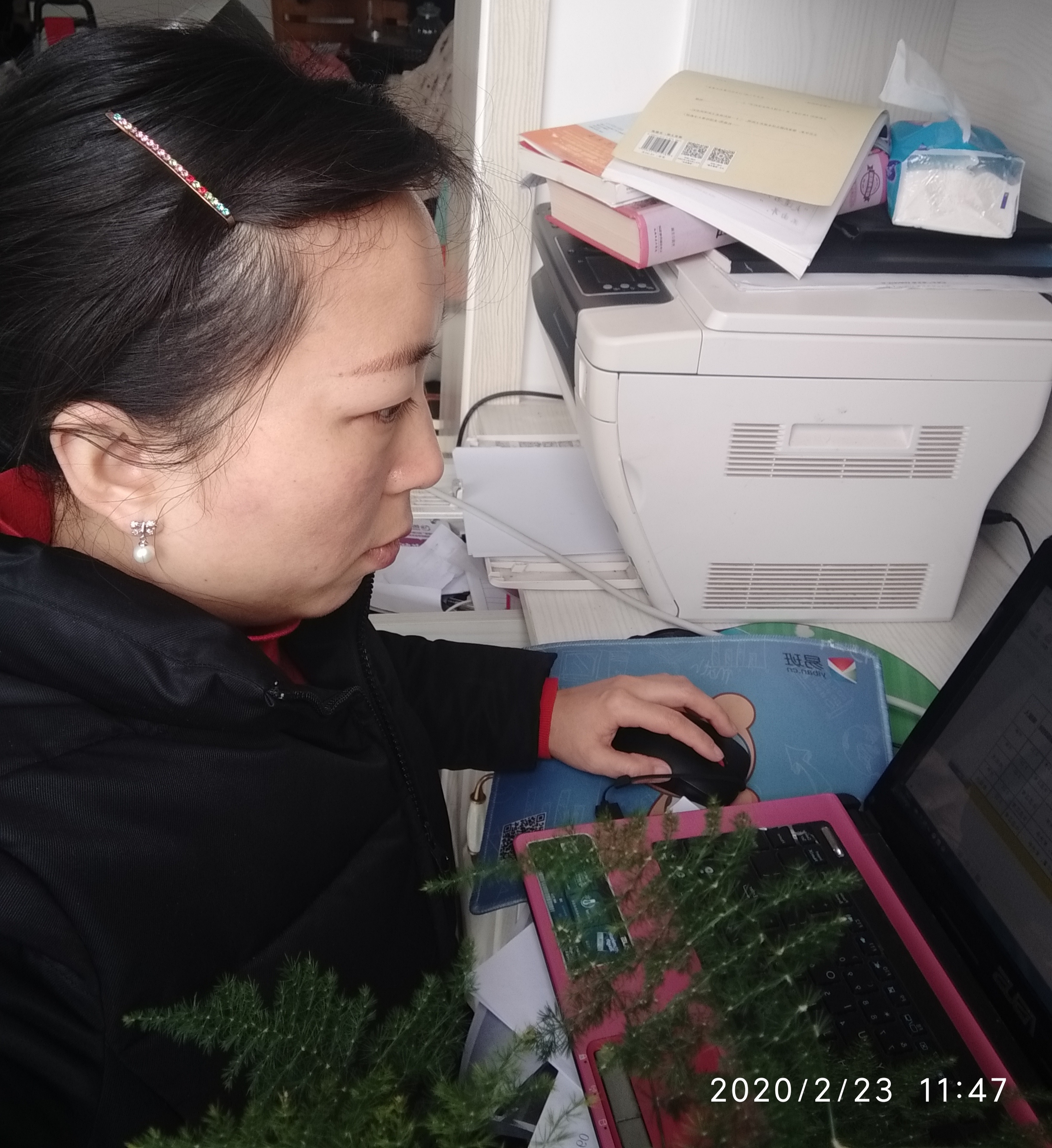 何群将家也变成了办公室,电脑、打印一体机齐备,作为心理辅导员,除了完成工作外,还不断对学生进行心理关怀和疏导,帮助学生正视疫情,调节好自身情绪,用乐观的态度为抗击疫情做出自己的努力。