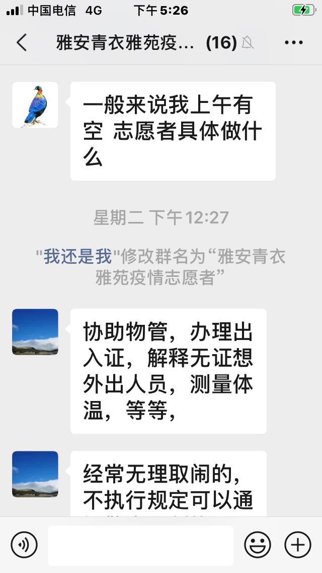 作为青衣雅苑小区业主委员会主任,张科宏老师还经常在物业、业主、社区之间搭起和谐沟通的桥梁,反映问题和解决问题。因疫情防控需要,需要有志愿者协助社区来进行小区管理,在他的带动和倡议下,青衣雅苑迅速组建起了16人组成的志愿服务队,主要负责小区出入口的管理,测量体温、办理出入证等。