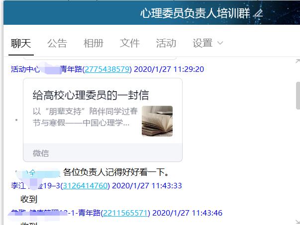 1月29日,心理健康教育中心整合专、兼职心理咨询师资源,开通疫情心理服务在线干预与援助平台 ,对全校师生提供心理危机干预服务。同时开通学工系统管理平台的心理咨询服务,提供网络咨询服务,并通过四川省心理学会在四川教育上发布。每周安排专、兼职心理咨询师在线服务,目前服务时间超过228小时。