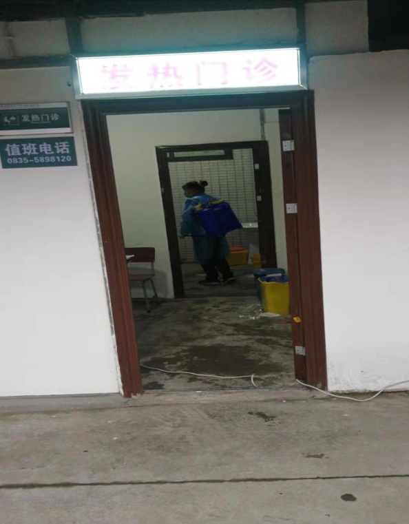 按照疫情防控消杀规范和要求,对发热门诊进行喷雾消毒