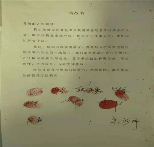 是我院护理工作者们的请战书