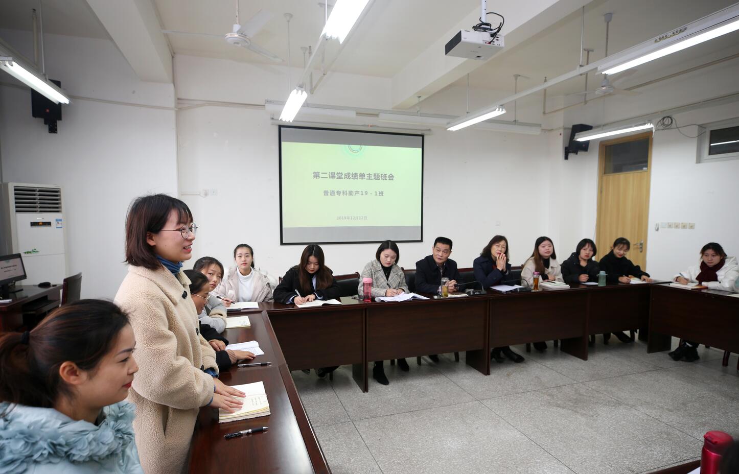 12月12日,结合“不忘初心、牢记使命”主题教育,学院党委书记李春模深入联系班级护理学院普通专科助产2019级1班参加了“解读第二课堂成绩单”主题班会,给同学们上了党课并与同学们座谈交流。学院党委委员、纪委书记杨洪媛,团委书记刘永恩,学生处副处长吕罗伊莎,护理学院党总支书记姚婕、副书记叶芋伶一同参加活动。班会由辅导员饶玲主持。