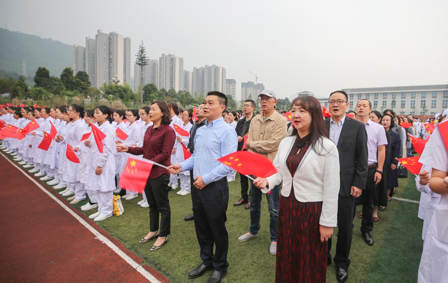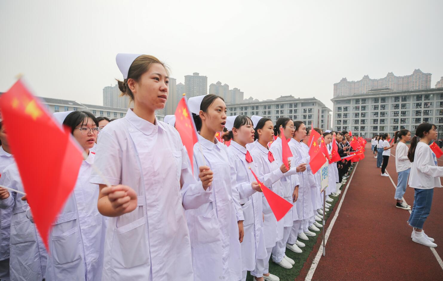 为庆祝中华人民共和国成立 70 周年,唱响“礼赞新中国,奋进新时代”的昂扬旋律,激发爱国之情,强化爱国之志,营造团结奋进的浓厚氛围,9月30日早上7:40,迎着秋日的朝阳,学院分别在青年路校区足球场和经开区实训与服务中心运动场举行了“五星红旗,我为你骄傲”升旗仪式。学院党委班子成员、中层干部、辅导员、两个校区的全体在校学生参加活动。