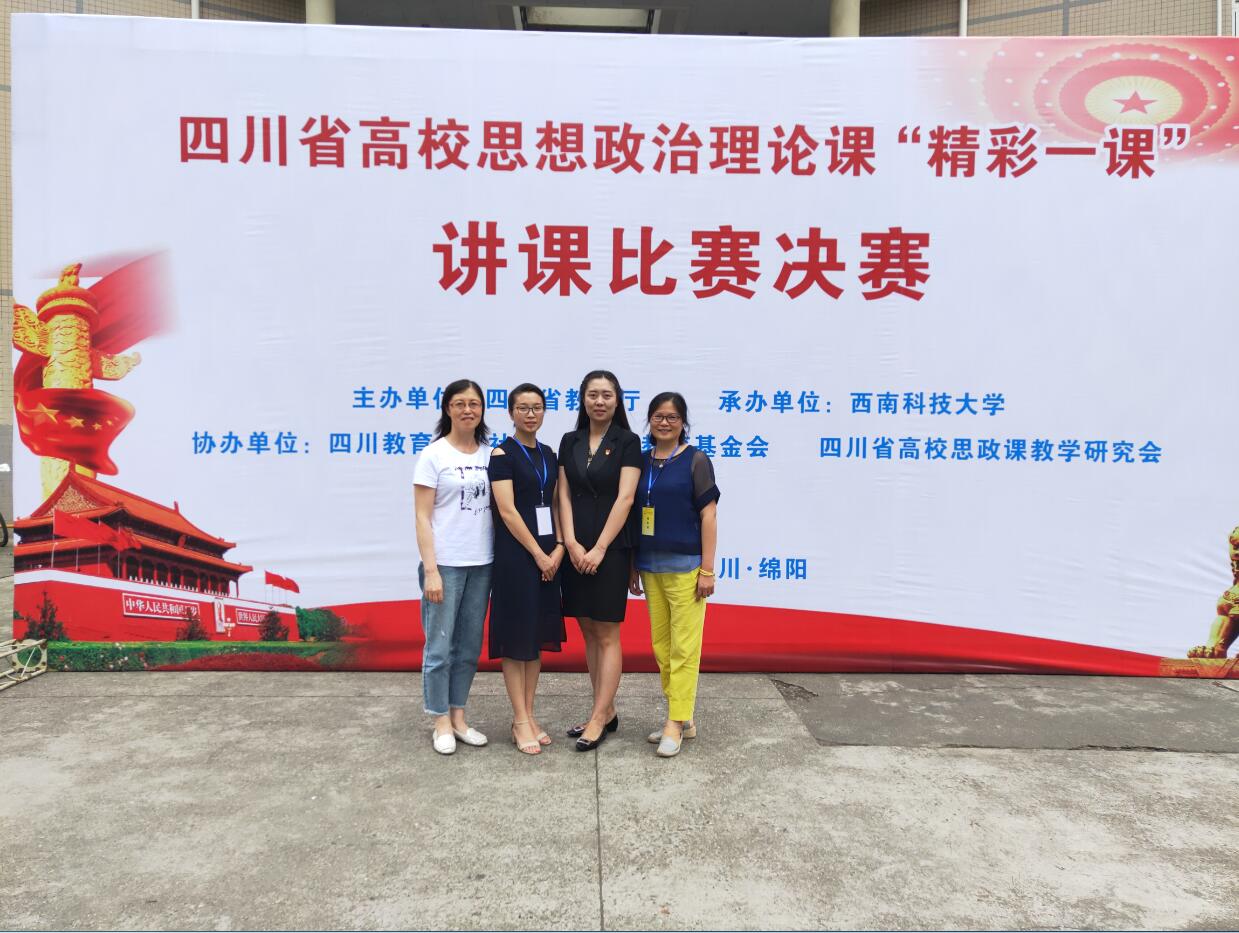 6月25日,四川省高校思想政治理论“精彩一课”讲课比赛决赛在西南科技大学举行。全省310多名高校思政教师经过初赛的角逐,有99名教师进入决赛。学院思政课教师任虹静、王坤容挺进决赛。最终,两位教师以赛前的精心准备、赛场的突出表现,取得佳绩。其中,王坤容老师在高职高专组“毛泽东思想和中国特色社会主义理论概论”课比赛中荣获二等奖,任虹静老师以“思想道德修养与法律基础”课比赛第一名的成绩,荣获一等奖。思政部主任李霓、教研室主任雷厉一行带队观摩比赛。
