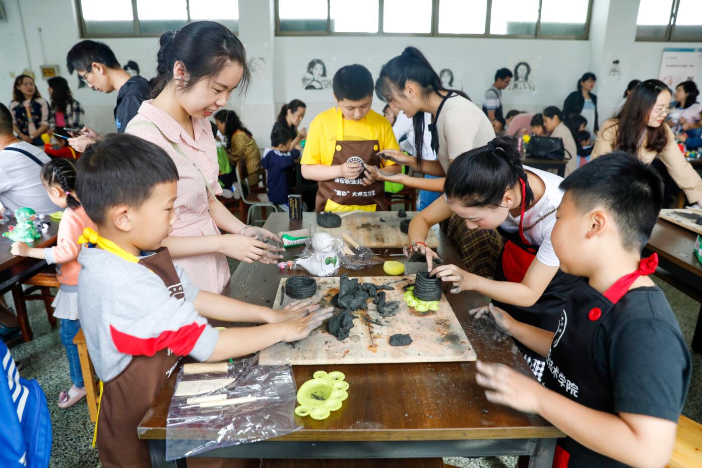 6月1日上午,由学院工会主办、师范学院联办的2019年教职工庆六一“彩绘石膏娃娃DIY”暨“黑砂艺术作品创意DIY”亲子活动,在学院青年路校区D303教室举行,党委副书记、工会主席付洪涛与来自全院13个工会小组的教职工及儿童100余人参加了此次活动。