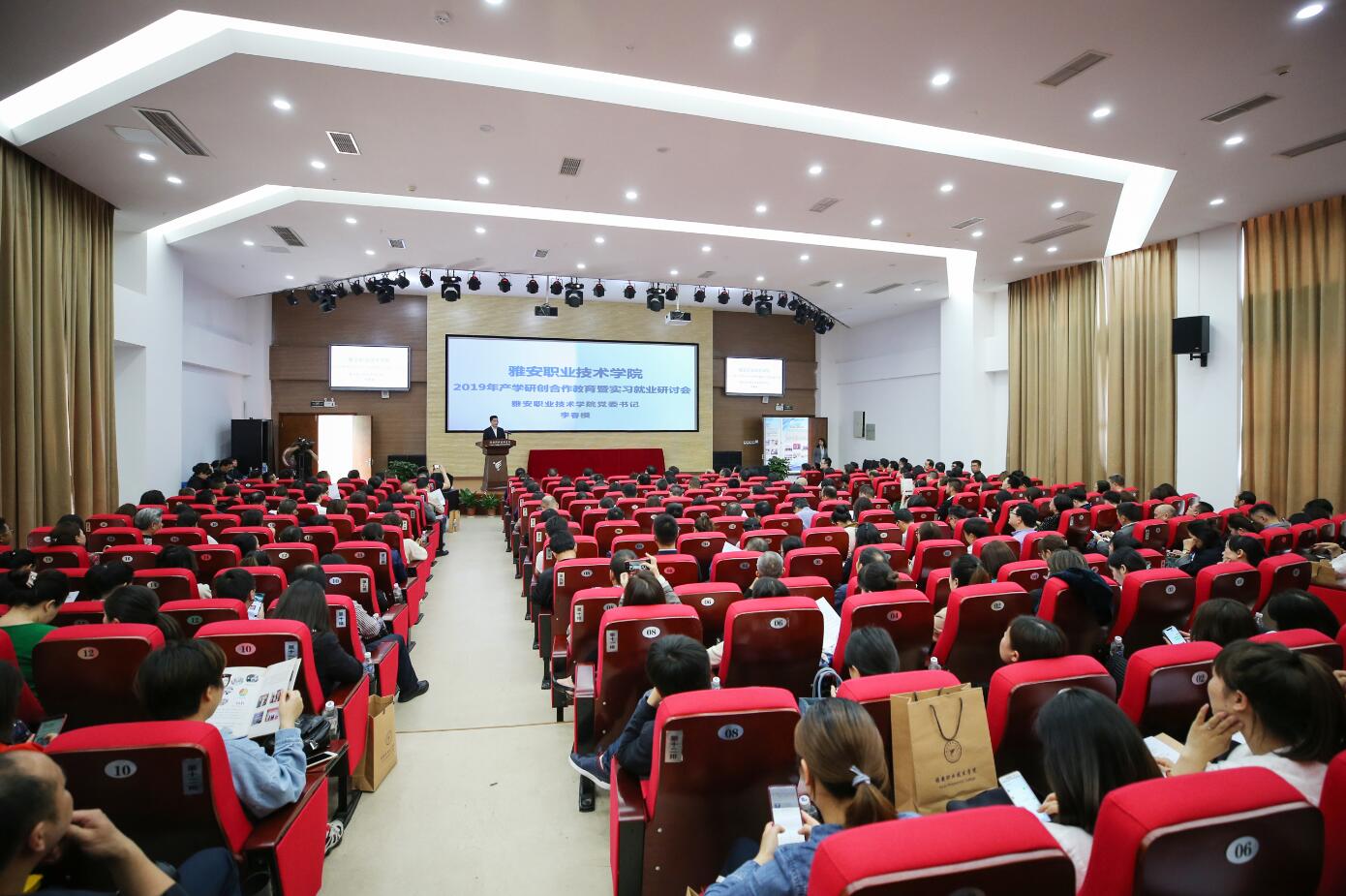 5月9日-10日,学院2019年产学研创合作暨实习就业工作研讨会在青年路校区顺利召开。雅安市委常委、宣传部长杨军,市政务服务和大数据局局长谭克强,市综合行政执法局局长陈建伟,市农业园区管委会主任古劲等市级部门领导出席会议,学院党政领导班子、中层干部和教职工代表,以及来自省内外的近200家合作单位的近300名嘉宾代表参加了此次大会,共同商议和推进产学研创合作事宜。研讨会由学院党委委员、副院长樊先茂主持。