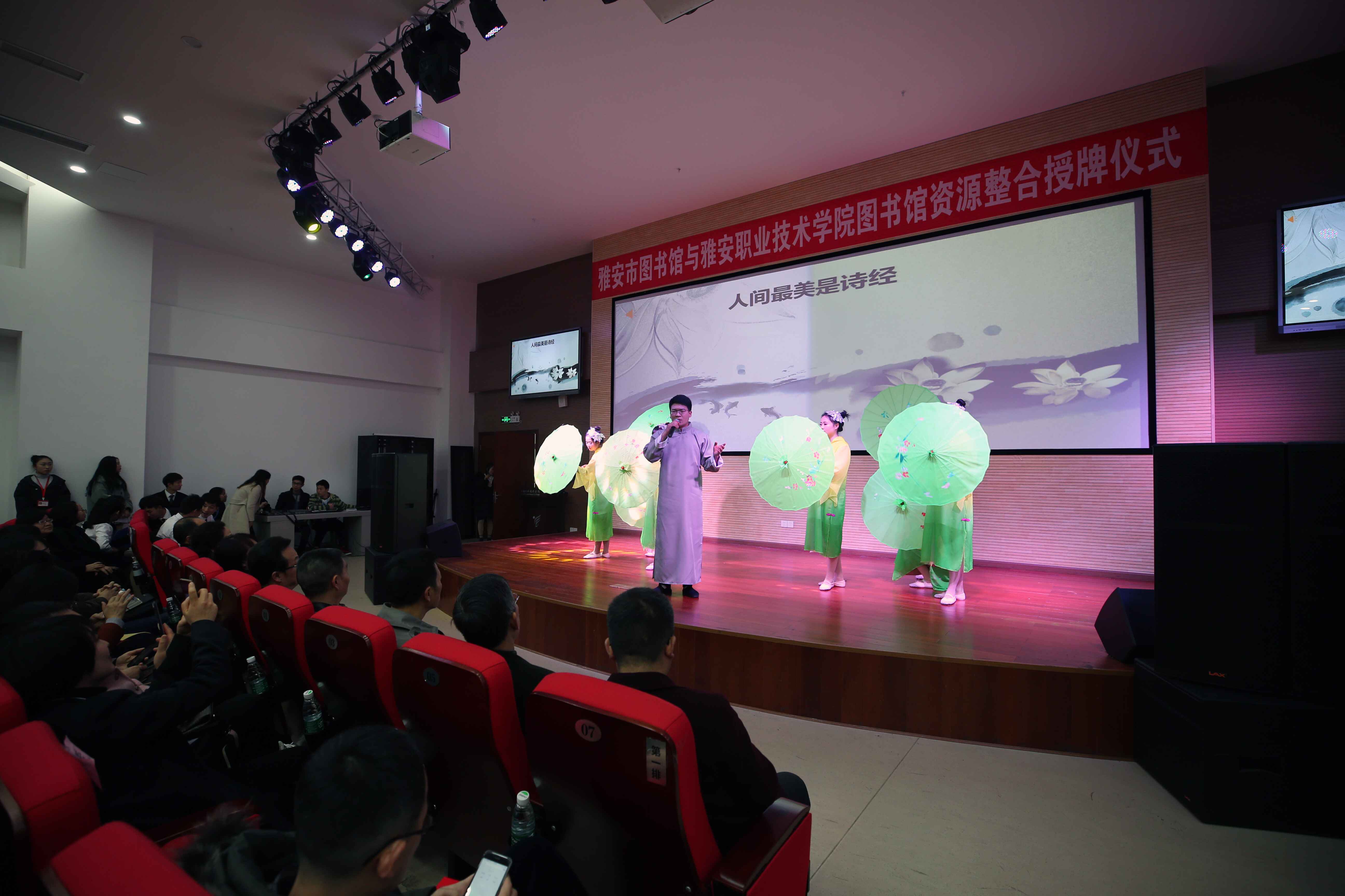 授牌仪式结束后,领导和来宾们欣赏了由学院学生带来的“我爱读书”、“人间最美是《诗经》”、“老师,您好”等表演节目。