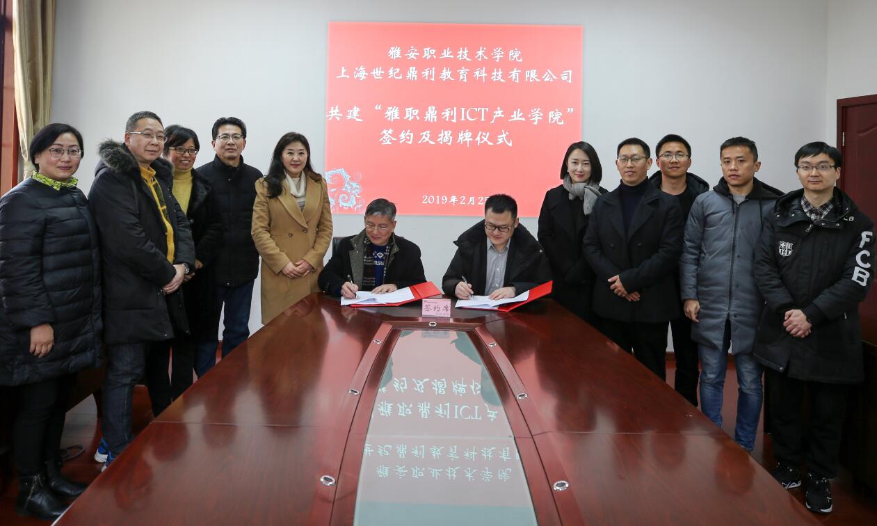最后,刘红代表学院与上海世纪鼎利教育科技有限公司签订了共建“雅职鼎利ICT产业学院”协议,石静院长与鼎利刘勇军总经理共同为“雅职鼎利ICT产业学院”揭牌。