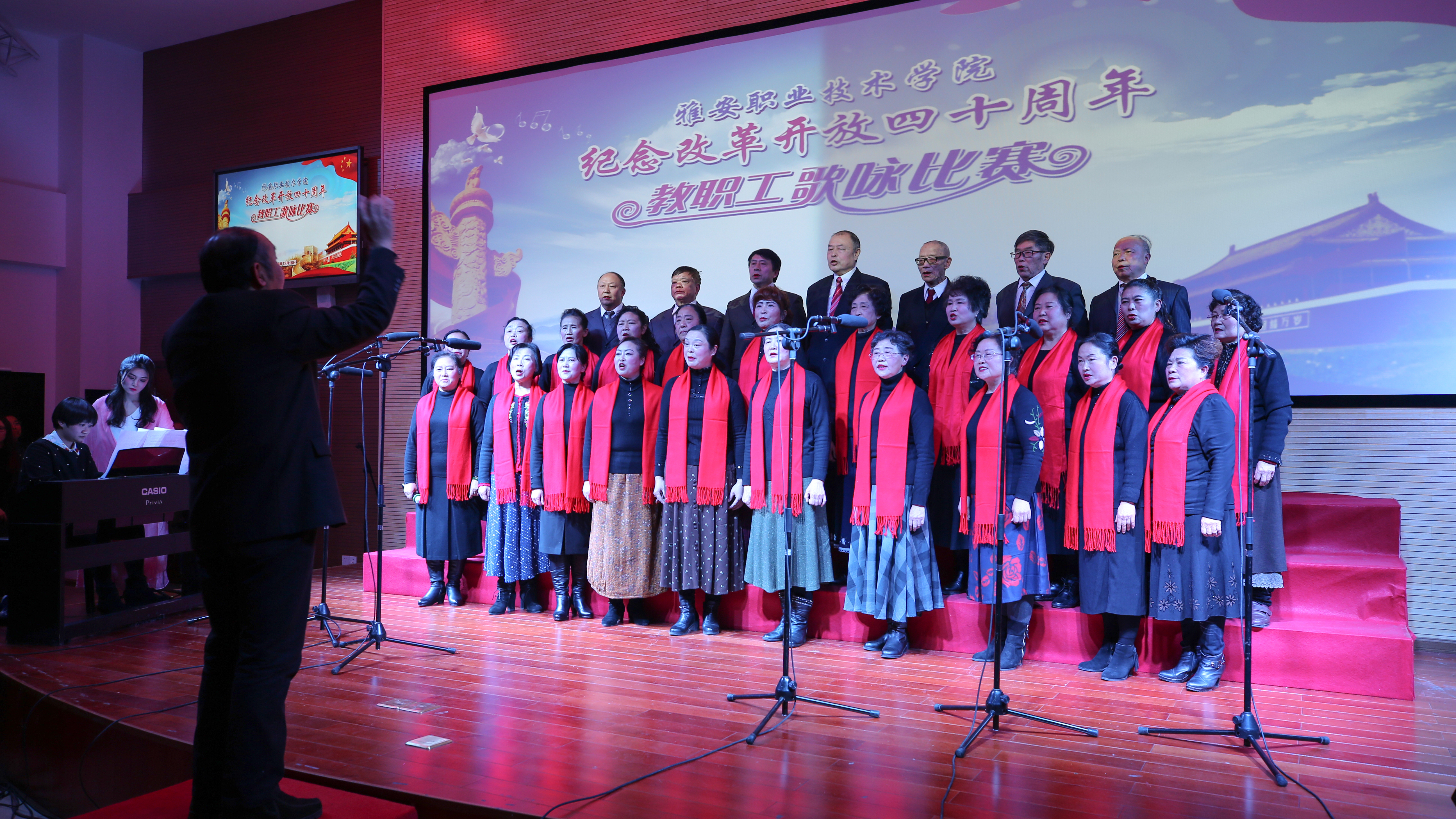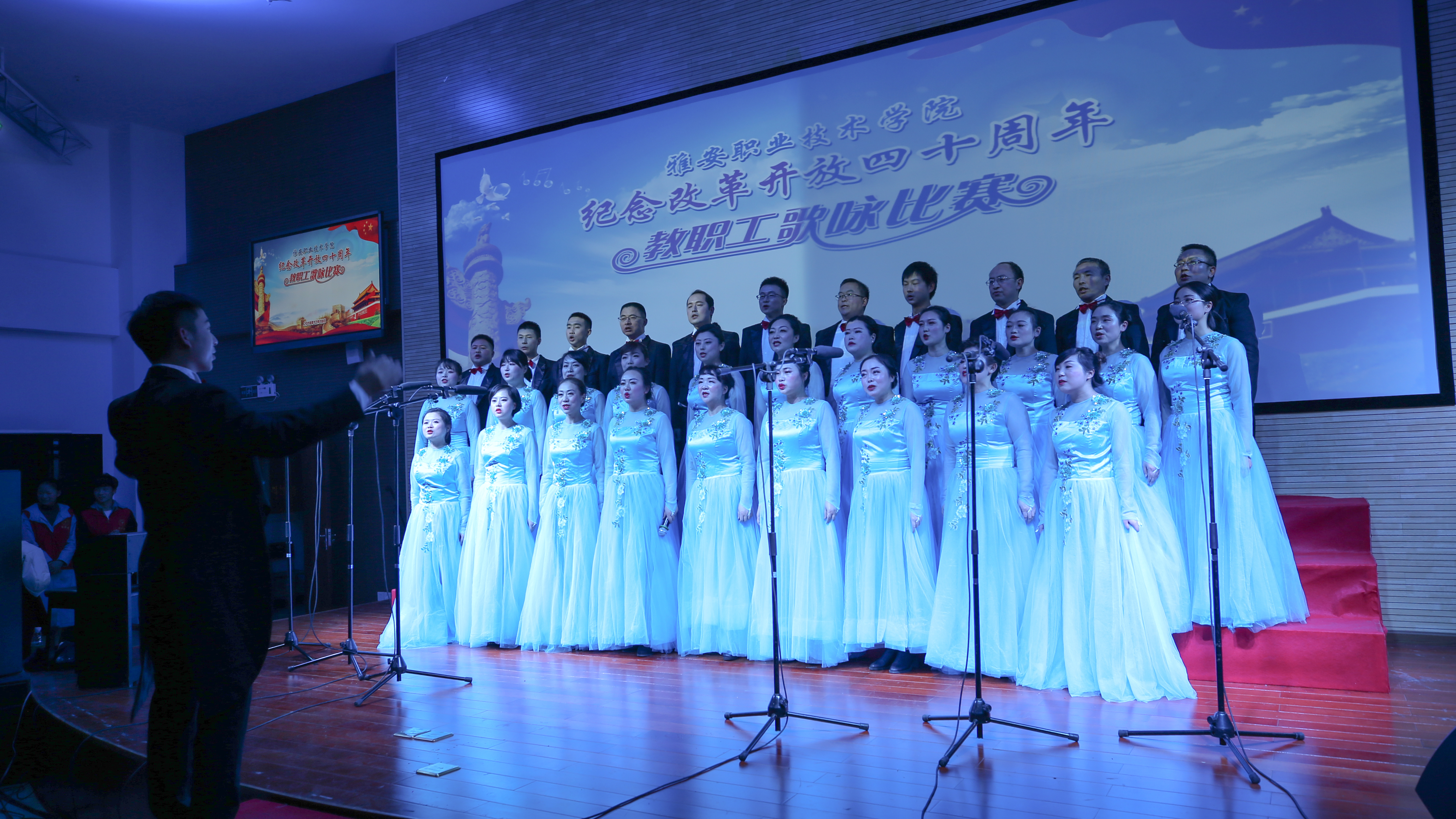 【本网讯】12月18日,Beat365唯一官方网站“筑梦新时代•奋斗新征程”庆祝改革开放四十周年教职工歌咏比赛在青年路校区实验实训楼二楼多功能厅隆重举行。学院党委书记李春模、院长石静等院领导莅临现场观看并参与演唱,各党总支、工会组成10支代表队、360余名教职工参加了演唱活动。比赛邀请了中国音协会员、四川省音协理事、雅安市音协主席李宣康,中国音协会员、四川省音协理事、雅安市音协副主席吕志健等5位专家担任评委。