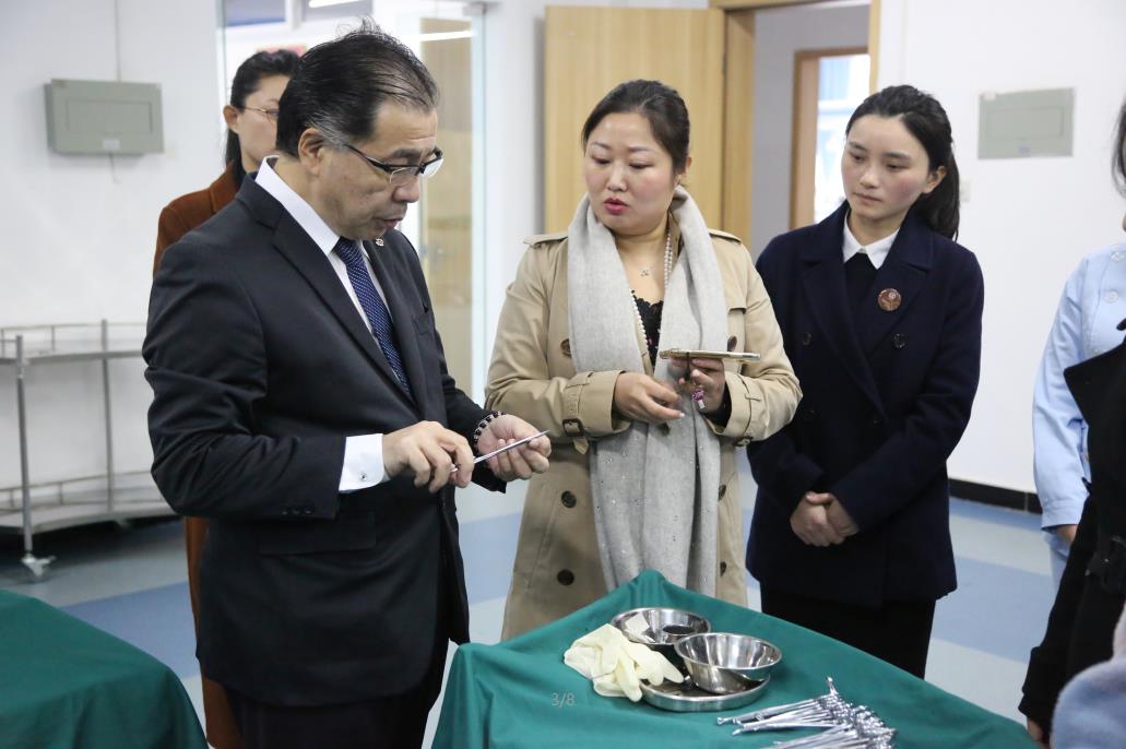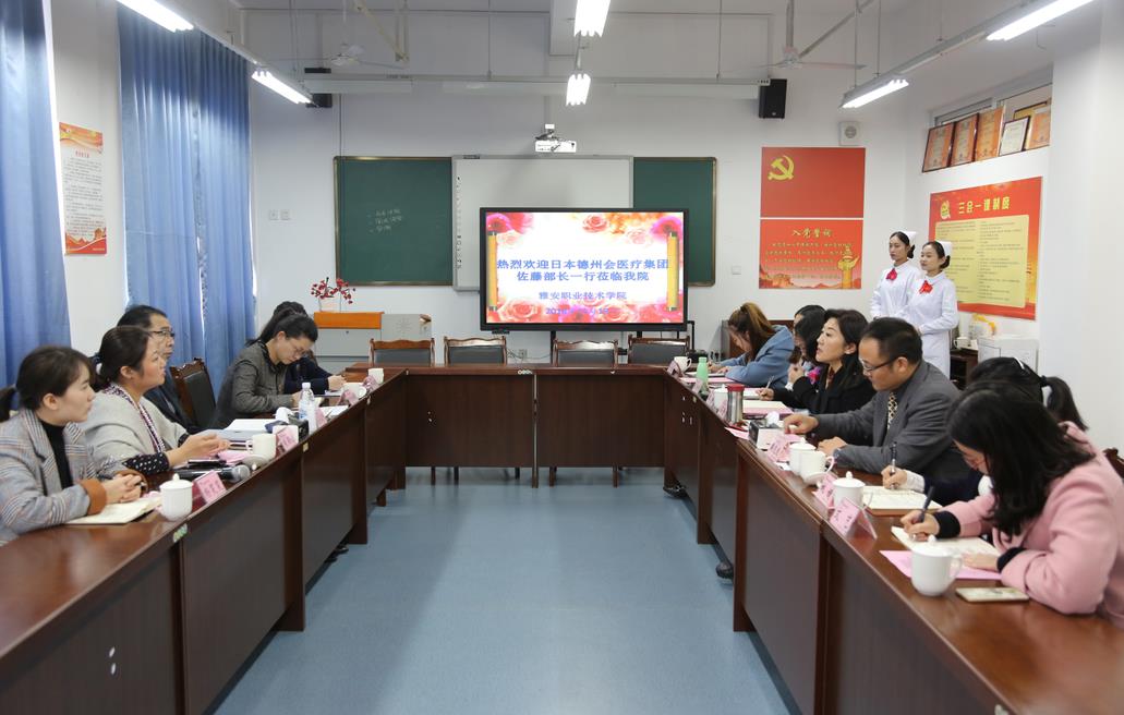 【本网讯】11月19日,学院在青年路校区护理实验实训楼607召开中日国际介护人才培养研讨会,与日本德州会医疗集团、四川中留国际教育共同研讨中日国际介护人才培养。会前,日本德州会医疗集团国际部部长佐藤昌则先生一行参观了护理实验实训楼;在研讨会上,学院院长石静出席会议并讲话。日本德州会医疗集团国际部部长助理朱丽佳、四川中留国际教育总经理印湘垠、校园管理部部长杨笑笑、邓国慧、学院副院长樊先茂、护理学院党总支书记姚婕、院长王静、副院长廖书娟参加了会议。会议由外事办主任文艺主持。