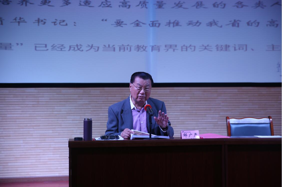 邹广严教授基于丰富的管理经验和高校成功办学经验,结合当今经济社会发展形势,紧紧围绕“高质量发展”这个主题,从中国高等教育为什么要提高质量、质量问题是如何产生的、什么是“高质量”的教育以及锦城学院是如何实现“高质量办学”四个方面,就应用型院校的办学定位、指导思想、竞争策略、基本认识、人才培养、教学模式、未来发展等进行了系统阐述和分析。他指出,教育既要有“适应性”,还要有“前瞻性”,应努力实现从“适应”社会到“引领”社会的跨越。大学应当解决新形势下“教什么、怎么教”的问题,从“适应型”向“未来型”转变,努力走在技术革命的前列。讲授内容紧贴应用型院校办学前沿,层层递进,深入浅出,激发了大家的共鸣和思考。