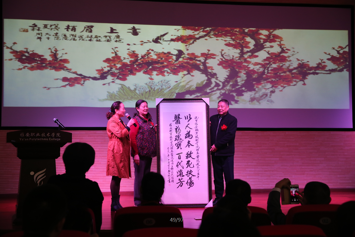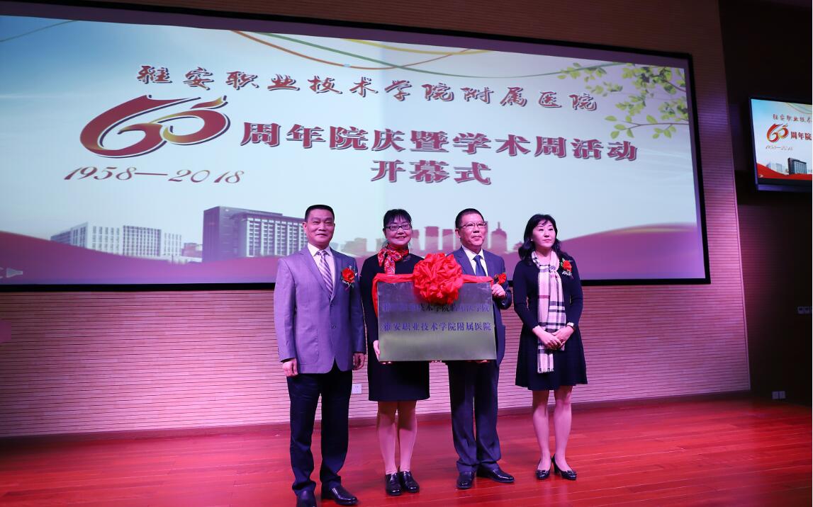 附属医院党总支书记祝继英在致辞中回顾医院60年的历史和取得不断成长、快速发展的原因,表示在新的征程中,雅职附院人将在学院党委和医院班子的带领下,围绕雅安市川西教育中心、川西医养中心、学院优质校和双一流等建设任务,进一步理清发展思路,全员上下同心,砥砺奋进,开拓创新,为推动雅安职业教育事业和民生福祉再上新台阶作出新的更大贡献。