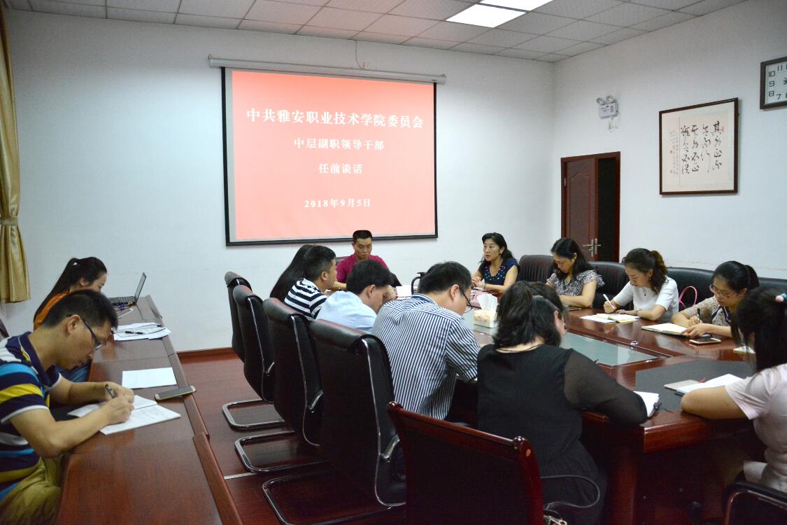 【本网讯】9 月5日下午,在育才路校区办公楼B211会议室,学院召开科级干部任前集体谈话会。学院党委书记李春模,党委副书记、院长石静,党委副书记付洪涛出席会议并讲话。会议由党委组织部部长夏安琼主持。