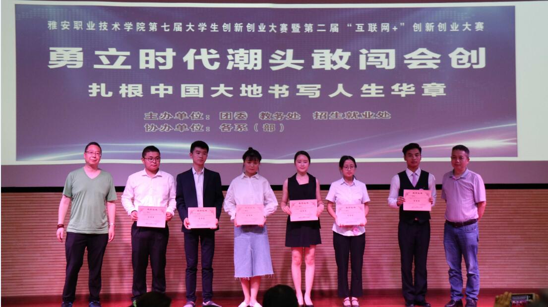 【本网讯】6月12日,由院团委、教务处、招生就业处主办,各系(部)协办的Beat365唯一官方网站第七届大学生创新创业大赛暨第二届“互联网+”创新创业大赛在青年路校区实验实训楼二楼多功能厅举行。本次大赛邀请共青团雅安市委副书记陆艳、四川省大学生创新创业培训中心导师团副秘书长毕鹏森、教育部全国万名优秀创新创导师翟刚以及雅安市就业专家团及导师团成员黄晞、雅安市就业局黄莉共5人组成专家评审团,党委委员宋立智以及各系部主要负责人作为嘉宾出席。以“勇立时代潮头敢闯会创,扎根中国大地书写人生华章”为主题的本次大赛吸引了大量的同学前来观摩,现场座无虚席。