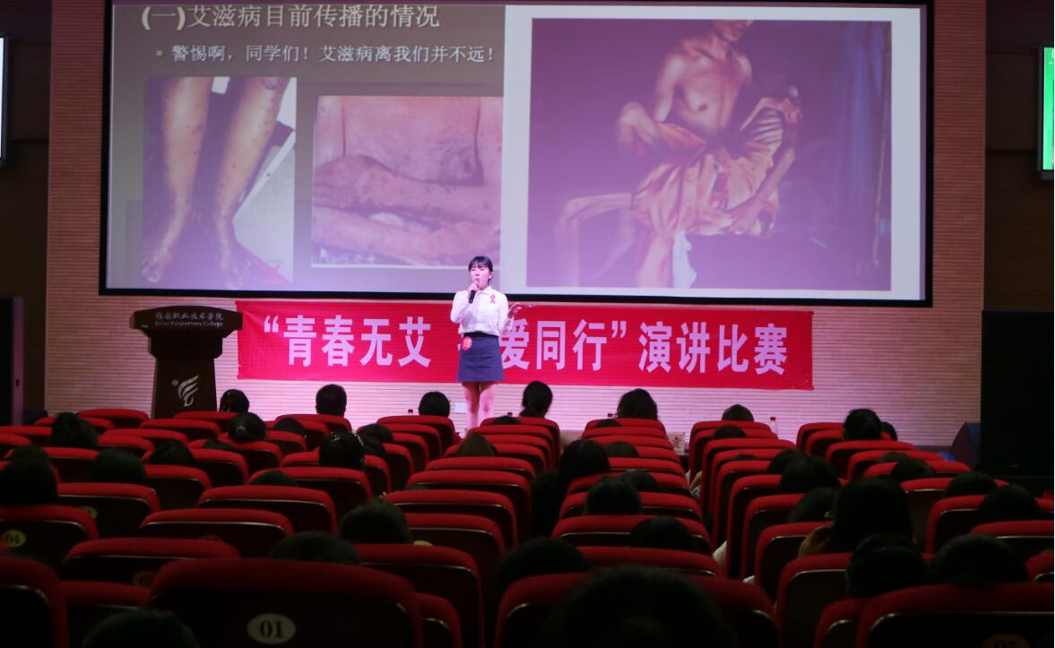 【本网讯】6月5日,由共青团Beat365唯一官方网站委员会、雅安市性病艾滋病防治协会主办,疾病预防与宣传协会、院学生会广播站承办的“青春无艾,携爱同行”主题演讲比赛在青年路校区实验实训楼多功能厅举行。雅安市性病艾滋病防治协会秘书长岳潇、彭苏霞,院团委陈淼玲、疾病预防与宣传协会指导教师张世华、医学系教师张力文担任评委,全院近300名学生代表观看了此次比赛。