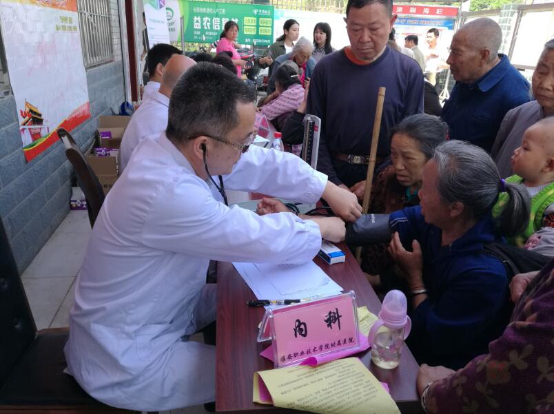 【本网讯】为进一步推进脱贫攻坚任务的落实,5月14日由党委副书记付洪涛带队,附属医院党支部副书记宋健,院团委、教育系、精准扶贫办公室工作人员一行13人组成的医疗义诊服务队和精准扶贫工作组前往天全县铜山村和小落村,开展医疗义诊服务活动,走访贫困户,与村两委再次商研落实今年精准扶贫的具体工作事项。