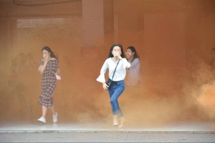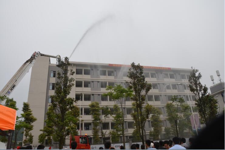 本次演练设青年路校区和经开区校区两个场地同时进行。下午14:30分,防灾减灾应急疏散演练正式开始,全体师生听到疏散指令后,按照事先设定的疏散路线,在各楼层指导老师的带领下,快速有序地撤向安全地带,“被困”人员在窗口挥舞毛巾发出求救信号。学院义务消防队员快速反应,设立安全警戒标志,进入火场进行初期火灾扑救和救援。