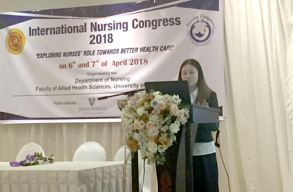 【本网讯】4月5日-8日,护理系副主任廖书娟、教研室主任李燕应斯里兰卡佩拉德尼亚大学的邀请,参加了在该大学举办的“2018国际护理大会”。廖书娟在大会上就护理系信息化教学实践进行了专题讲座,并与来自美国、马来西亚、约旦、也门、印度、印度尼西亚及斯里兰卡等国家的200余名参会代表进行了分享及交流。