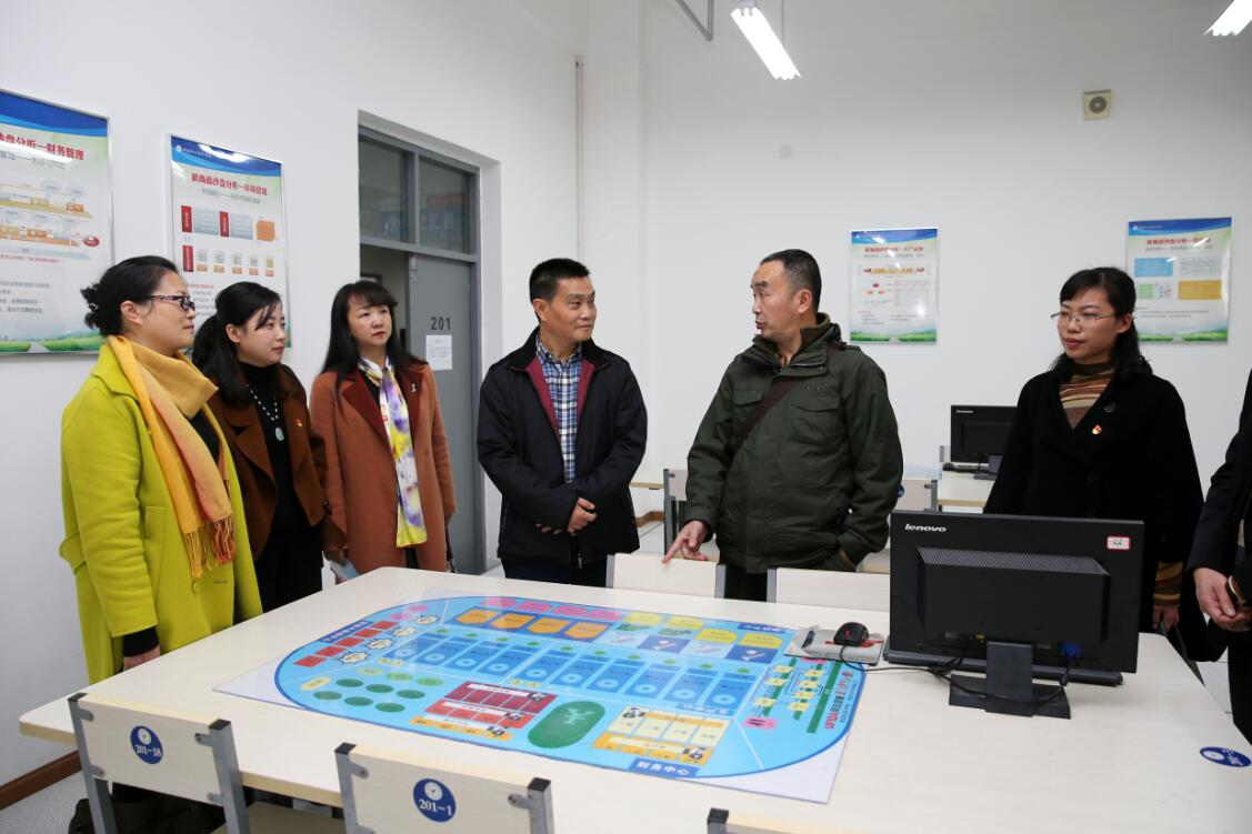 走进旅游经济管理系财务虚拟仿真实训中心,会计专业的同学正在进行校园虚拟仿真综合实习,各虚拟岗位各司其职,一片繁忙。李春模边走边看,认真聆听教研室负责同志的介绍,了解到学生在国家、省级专业技能大赛获奖时,他充分肯定了虚拟仿真教学方法,勉励系部要抓住机遇、克服困难、勇于挑战、敢于担当,大力发扬雅职院精神。