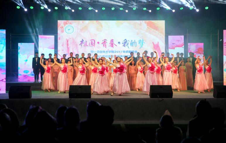 【本网讯】用信仰追逐青春的足迹,用理想打造梦想的天堂,11月16日晚上,由学院团委主办的“祖国•青春•我的梦”学院2017年迎新晚会暨第八届校园文化艺术节开幕式晚会在青年路校区足球场举行。雅安市委宣传部、团市委、雅安市志愿者服务中心、雅安市广播电视台等单位嘉宾应邀出席晚会,学院党委副书记付洪涛以及各系部主要负责人、团总支书记与全院3000余名学生代表共同观看了演出。