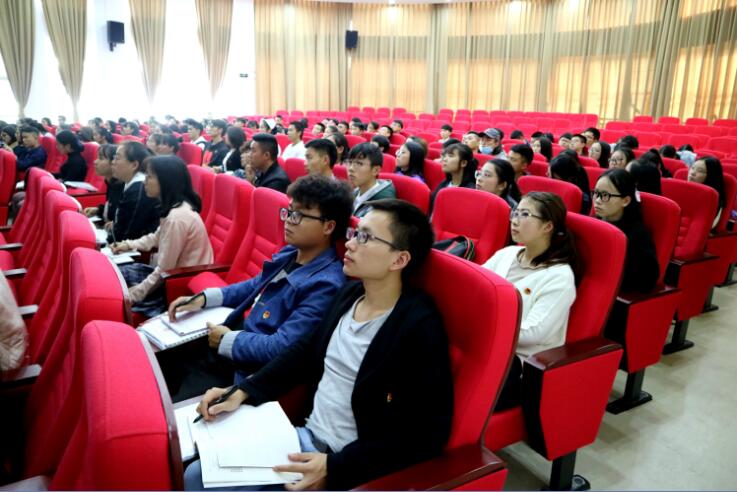 【本网讯】为深入学习宣传贯彻党的十九大精神,让全院青年团员在实现中国梦的伟大征程中贡献青春力量,11月7日下午,学院“不忘初心跟党走 青春共筑中国梦”第四期团课培训班开班典礼在青年路校区学生活动中心举行。院团委书记刘永恩,各系团总支书记、副书记等老师参加了开班典礼。院学生会干部、各系学生会主席团、2017级各班团支部书记共163名同学参加典礼并接受培训。会议由院学生会副主席李婉莹主持。
