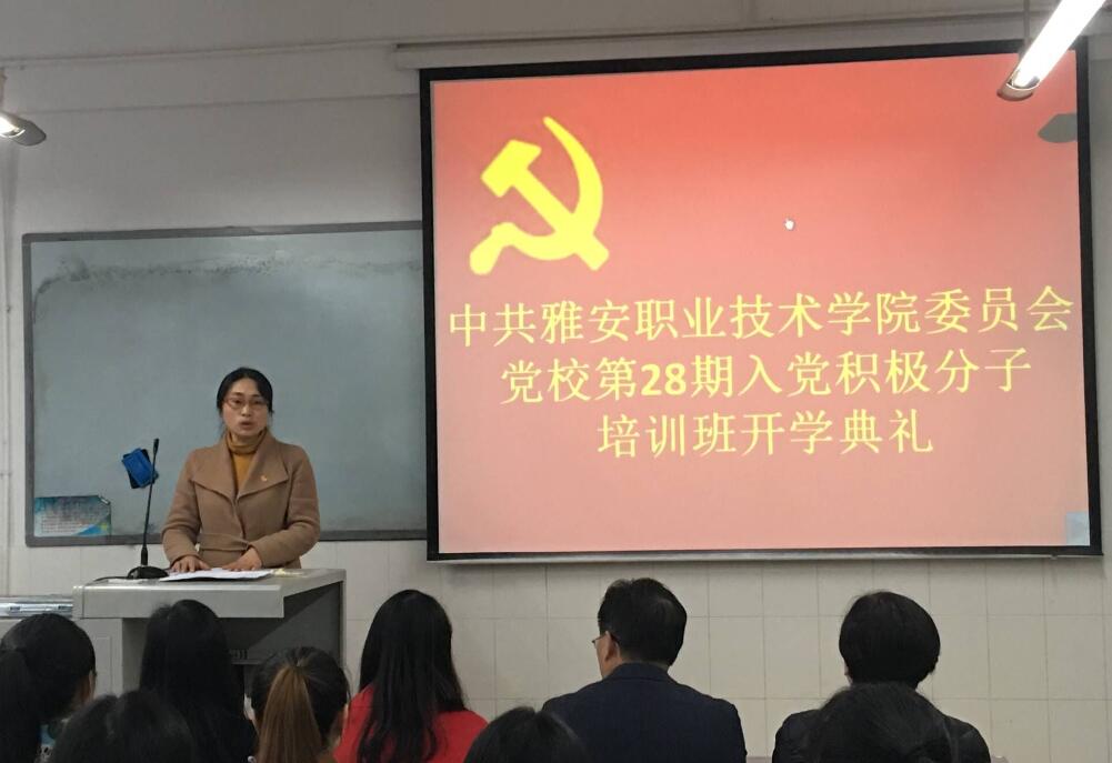 【本网讯】10月31日下午,学院党校第二十八期入党积极分子培训班在青年路校区A207举行了开班典礼。学院党委组织部部长、人事处处长夏安琼,副部长代英,各系党支部书记,和42名学员参加了开班典礼。典礼在嘹亮的国歌声中拉开帷幕。