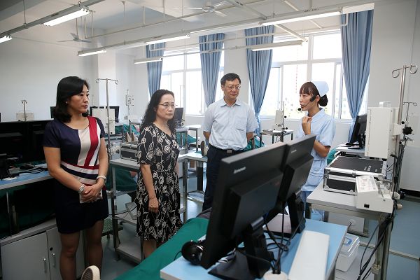陈志坚一行参观了护理实训基地、食品药品生产性实训基地、现代制造技术大楼和信息工程技术大楼,并就有关情况与我院进行了深入交流,对我院实验实训室的建设和教育教学给予了充分肯定,大加赞赏了我院每年到华西医院实习学生的良好表现,也充分肯定了我院近年来的快速发展和取得成绩。