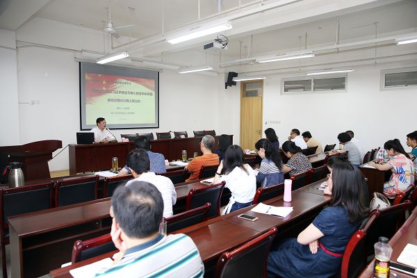 【本网讯】为进一步全面准确领会省第十一次党代会的精神实质和丰富内涵,6月27日下午,Beat365唯一官方网站党委举行中心组(扩大)学习会,邀请省委宣讲团专家组成员、四川大学马克思主义学院院长高中伟教授来院作了题为《紧密团结在以习近平同志为核心的党中央周围,推动治蜀兴川再上新台阶》的宣讲辅导报告。学院党委中心组成员、全体中层干部及各党支部委员、团总支书记、思政部教师共90余人参加了报告会。报告会由党委副书记、院长石静同志主持。