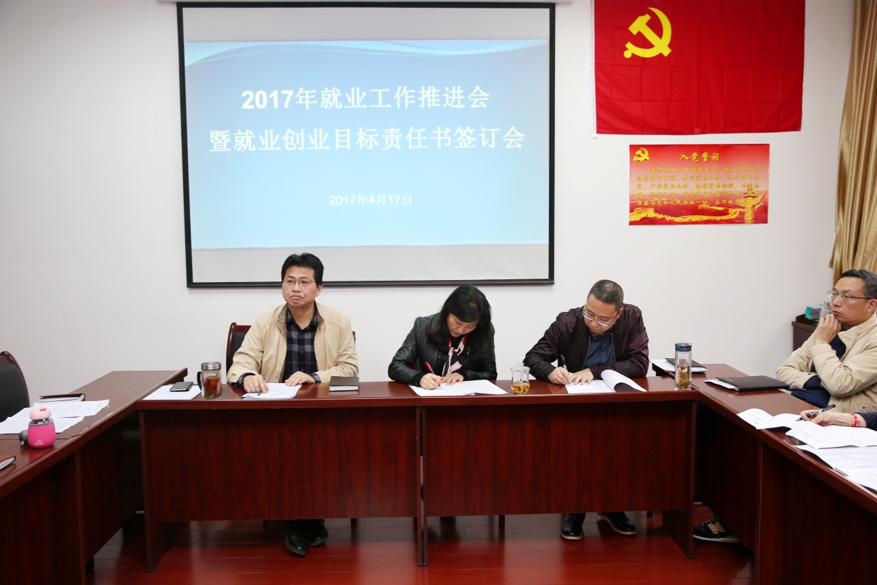 【本网讯】为认真贯彻落实国家关于进一步做好高校毕业生就业创业工作的有关文件精神,推动毕业生就业创业工作有序开展,4月17日下午,我院2017年就业工作推进会暨就业创业工作目标责任书签订会在育才路校区召开。院长石静、党委委员宋立智出席,会议由党委委员宋立智主持。招就处处长宋峰、副处长吴洁和各系就业工作负责人参会。