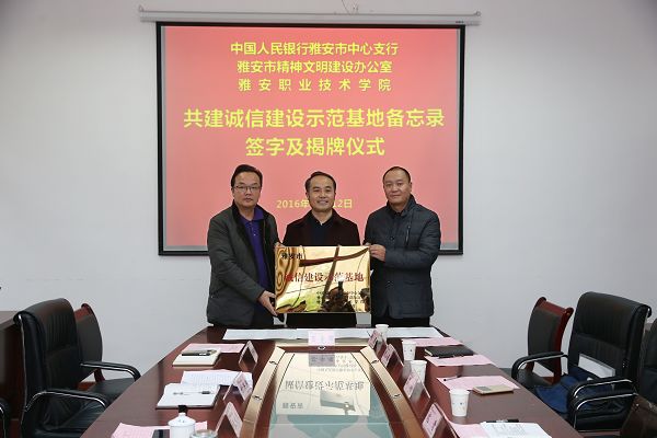 此次三方合作共建诚信建设示范基地是雅安银校合作、校地合作的新内容,必将为三方发挥各自优势深入开展广泛合作,共同推进青年学生社会主义核心价值观教育、个人诚信教育、征信文化校园建设及雅安社会信用体系建设产生积极影响。