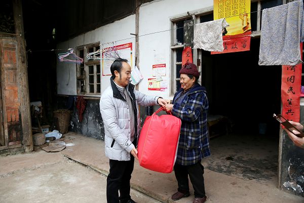 此后,工作小组分成三个团队,由张大凯书记、石静院长、付洪涛副书记分别带队,前往学院结对帮扶的10户贫困户家中,为每户贫困户送去了棉被、床上用品四件套、食用油等暖冬慰问品。每到贫困户家中,学院领导都仔细询问农户生产生活状况,积极鼓励贫困户要更加积极、更加自信、更加努力地实现自身脱贫梦想。见到学院领导来家中看望,贫困农户十分热情、十分感谢,以感恩之心表达了不辜负学院长期以来的关心帮助、辛勤付出,不辜负党和政府的关怀支持。