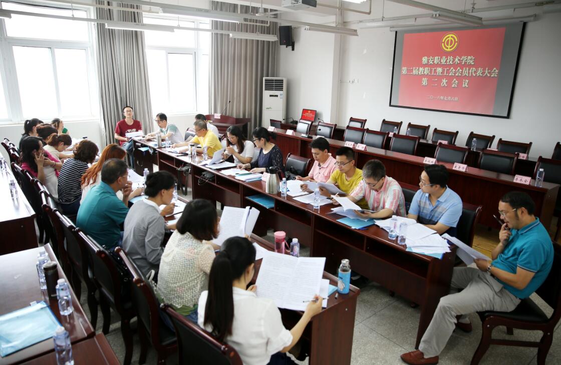 【本网讯】7月7日,雅职院二届二次教代会暨工代会在青年路校区图书综合楼903会议室召开。学院领导班子,70余名正式代表出席会议,来自学院各职能部门、各民主党派有关负责人及市人大代表、政协代表列席了会议。
