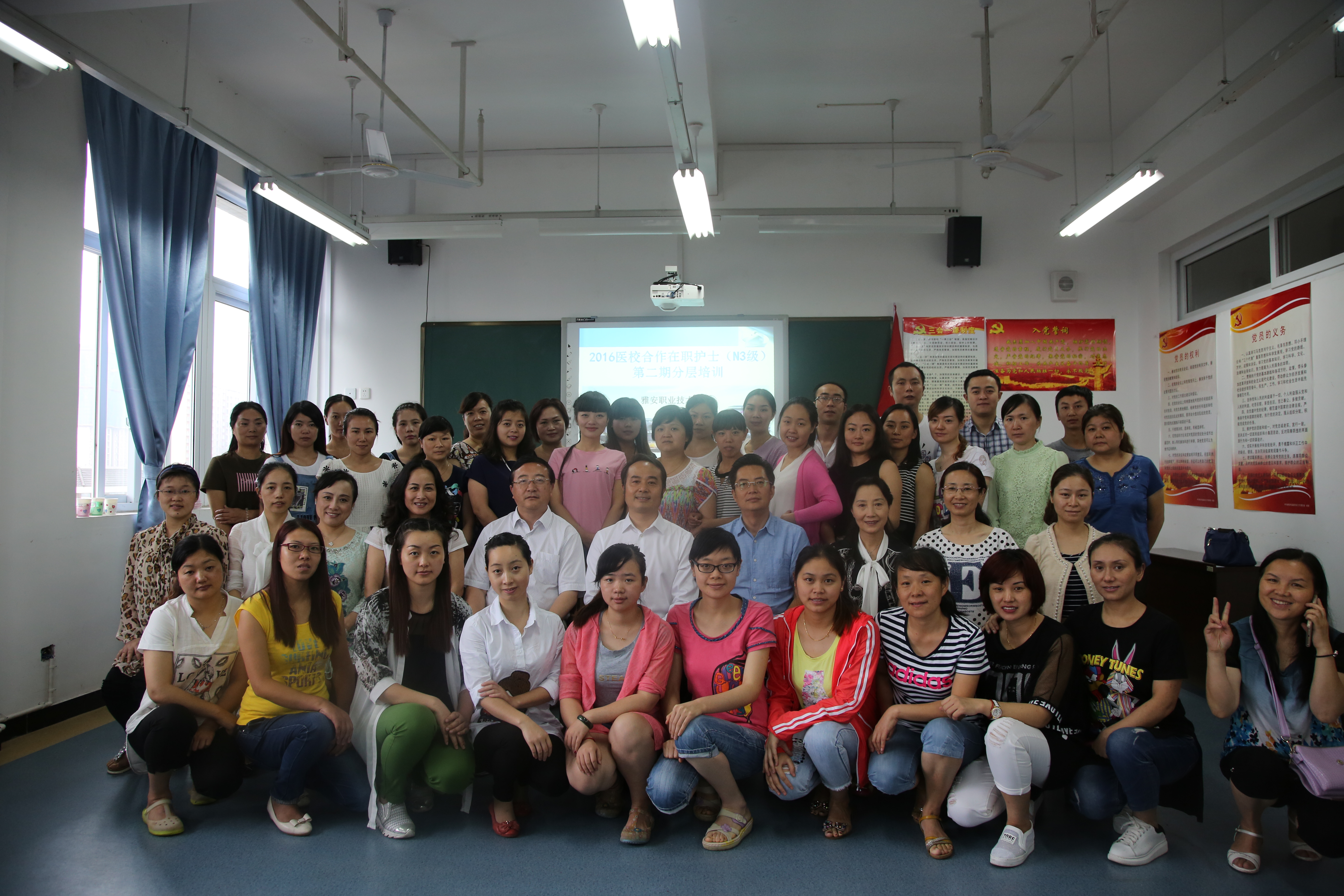 【本网讯】7月6日上午,我院2016年第二次N3级医校合作在职护士分层培训开班仪式在青年路校区实训楼607举行。市卫生与计划生育委员会主任李志强、学院党委书记张大凯出席开班仪式并讲话。市人民医院院长邱雄,市护理学会理事长、市中医医院护理部主任黄丽琼,护理系相关负责人以及33名学员参加了开班仪式。