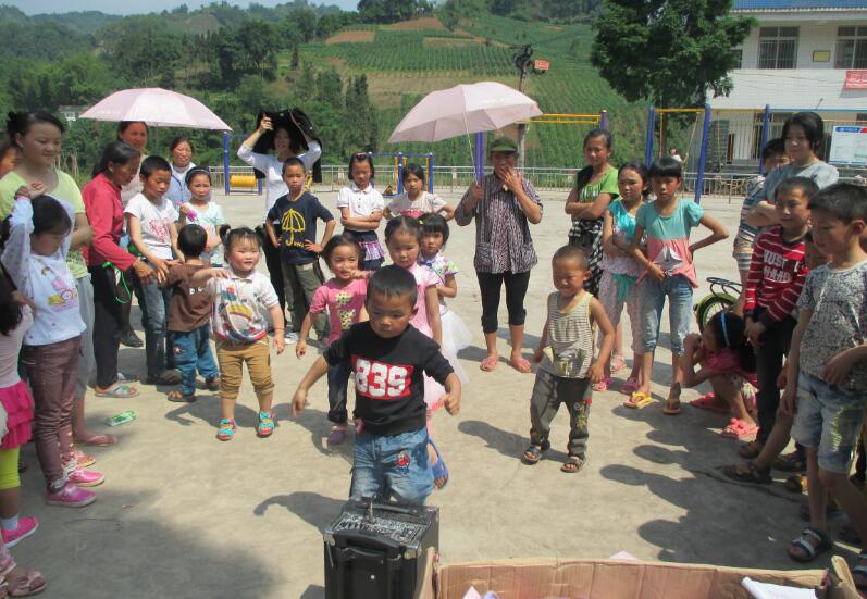 5月29日下午,在铜山村活动室外,村两委成员和村关工委成员与孩子们共聚一堂庆祝六一。孩子们为大家表演了唱歌、跳舞等节目,还参加了跳绳、扔乒乓球等活动。铜山村两委成员和村关工委成员代表学院、天全县法院、天全县人保公司为孩子们赠送了儿童节礼物。孩子们抱着崭新的文具,露出天真纯朴的笑容,说他们一定会好好读书,感谢各位叔叔阿姨的关心和爱护。