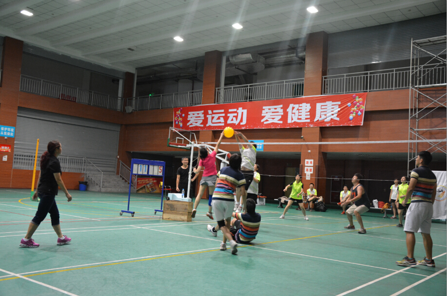 我院石静院长亲自带队参加了比赛。球场上,队员们个个龙腾虎跃,积极跑位接球、救球、扣球。双方队伍的啦啦队也格外投入,伴随着气排球的一起一落,欢呼声、加油喝彩声此起彼伏,精彩的传接配合、大力扣球使得场上气氛紧张而激烈。比赛途中,石院长在起跳大力扣球时发生意外——被对方拦网队员踢到右小腿,因出现红肿,不得不退出比赛,但她拼搏的精神却激励每一个队员为团体而努力奋斗,为成功的信念而打拼。最后,我院以3:1获胜。比赛结束后,双方队员意犹未尽,对赛场上两队的精彩表现展开了热烈讨论。