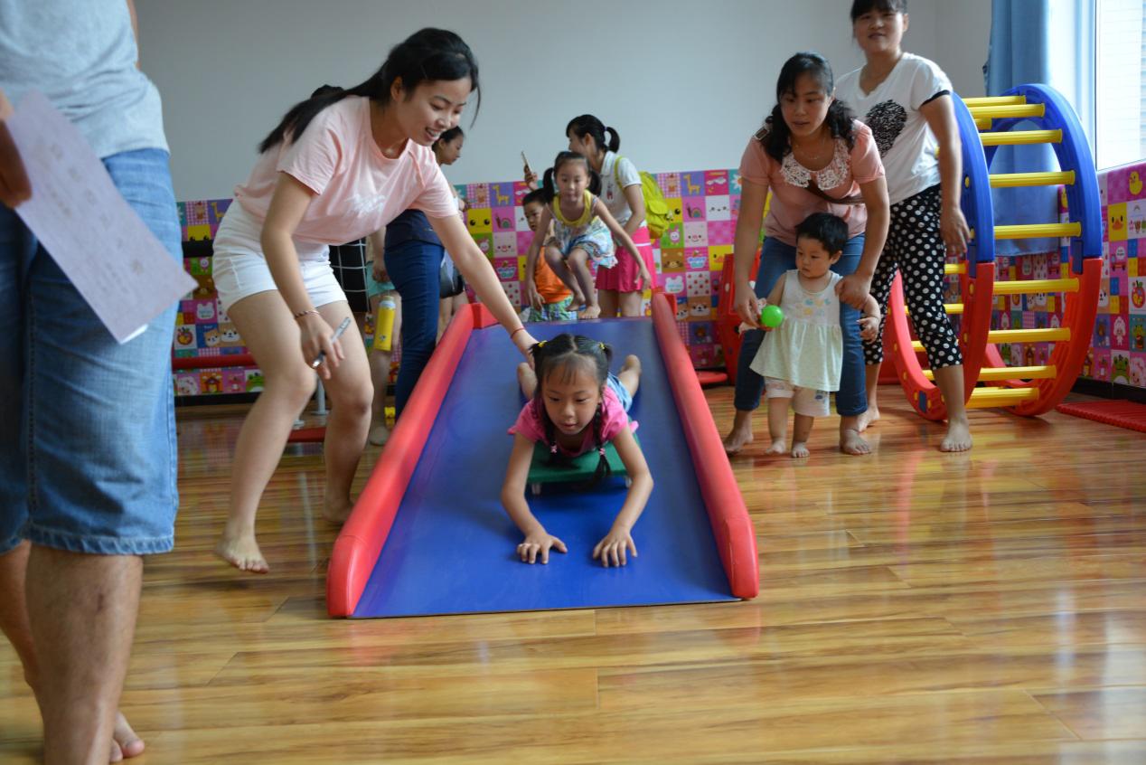 在教育系学前教育、特殊教育专业的老师、同学指导下,孩子和家长们参加到感觉综合项目训练及“闯关”——平衡木、四轮滑滑梯、勇敢飞人等幼儿趣味游戏中,孩子们玩得不亦乐乎。“闯关”成功后的孩子还每人收获了一份由学前教育专业同学们亲手制作的独特礼物。