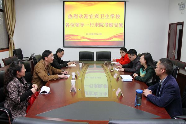 交流中,宋志宏表示,看了学院优良的实训条件、听了专业建设成果介绍后,感触深、收获大,宜宾卫生学校正在进行新校区建设,希望我院在校园文化建设方面多介绍些经验。付洪涛及在座领导从精神文化、制度文化、校园文化活动打造等方面就我院的校园文化建设情况及特色向来宾进行了介绍。同时,双方还就少数民族学生的管理等问题进行了交流探讨。
