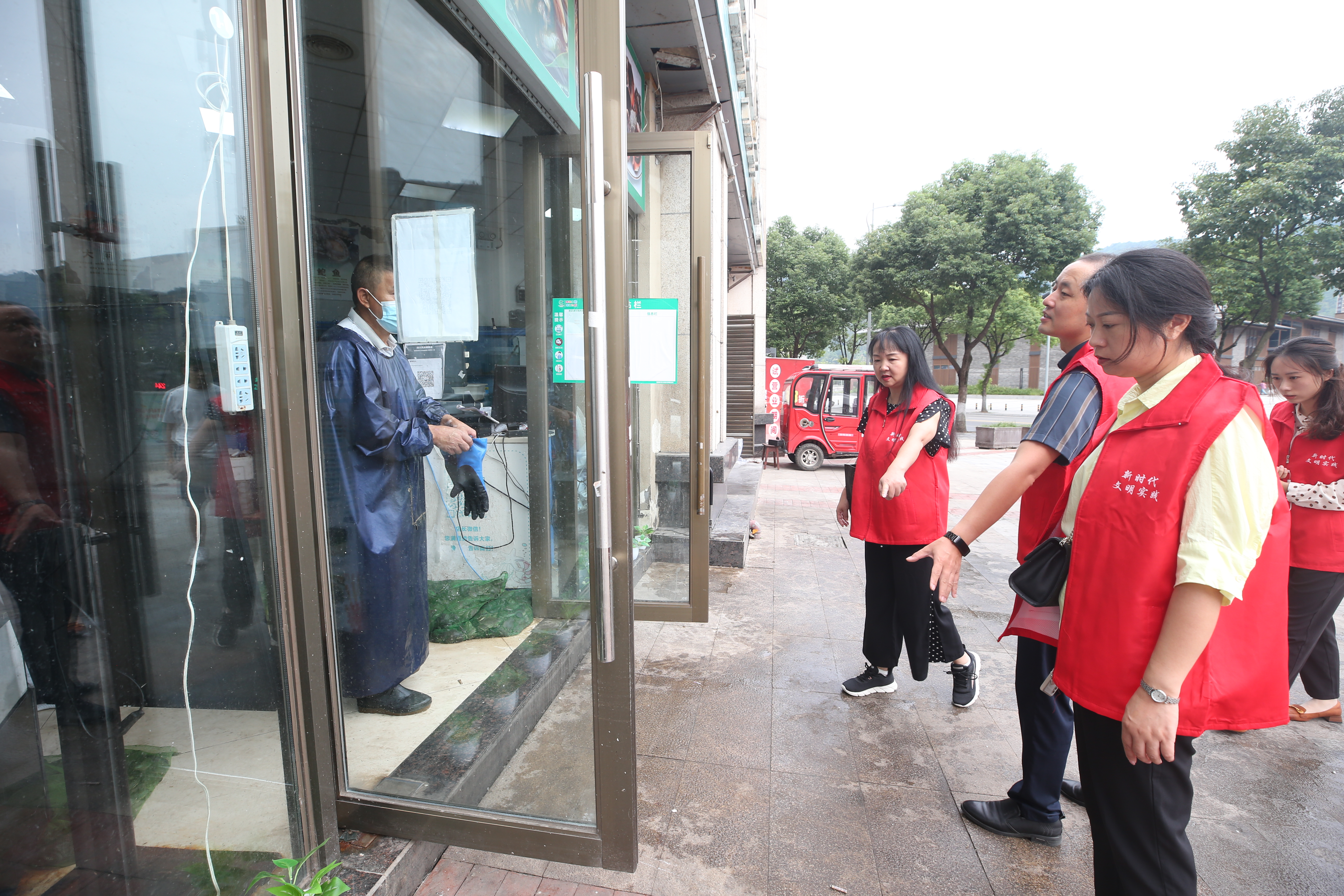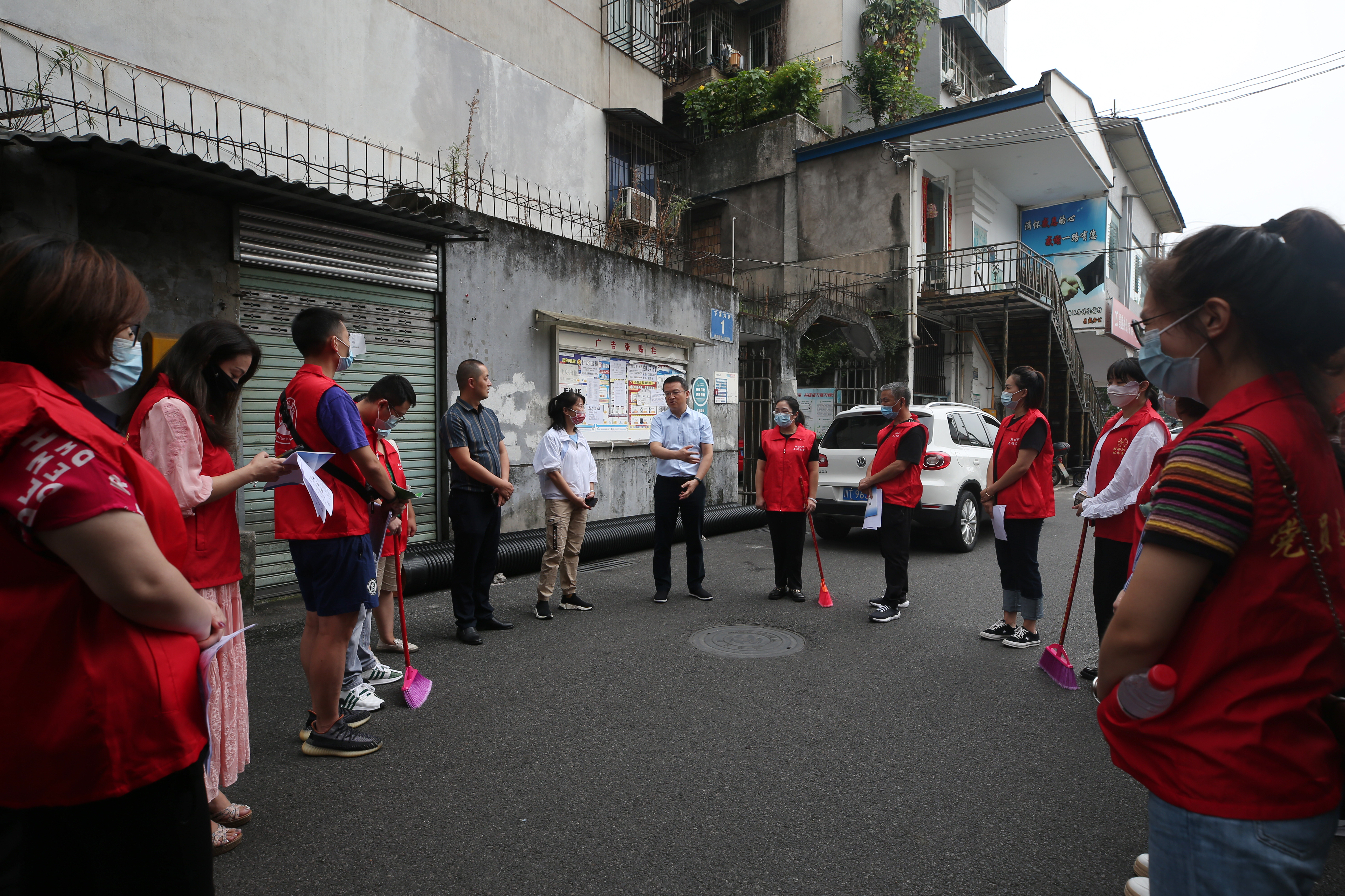 9月2日上午,Beat365唯一官方网站党委副书记、院长黄诚率队深入联系帮扶大院调研督导全国文明城市创建工作,学院党委副书记付洪涛,宣传统战部负责人,社区相关负责人等陪同。