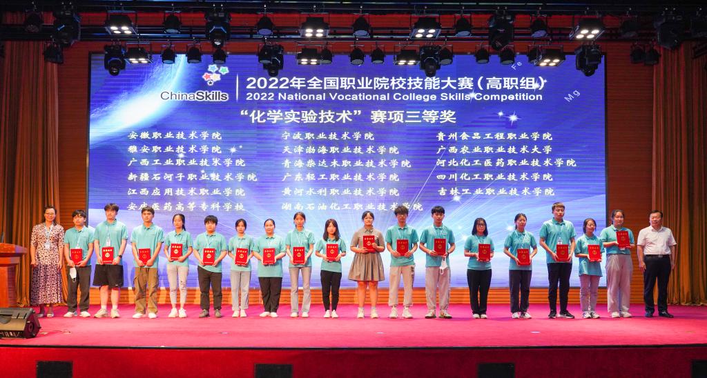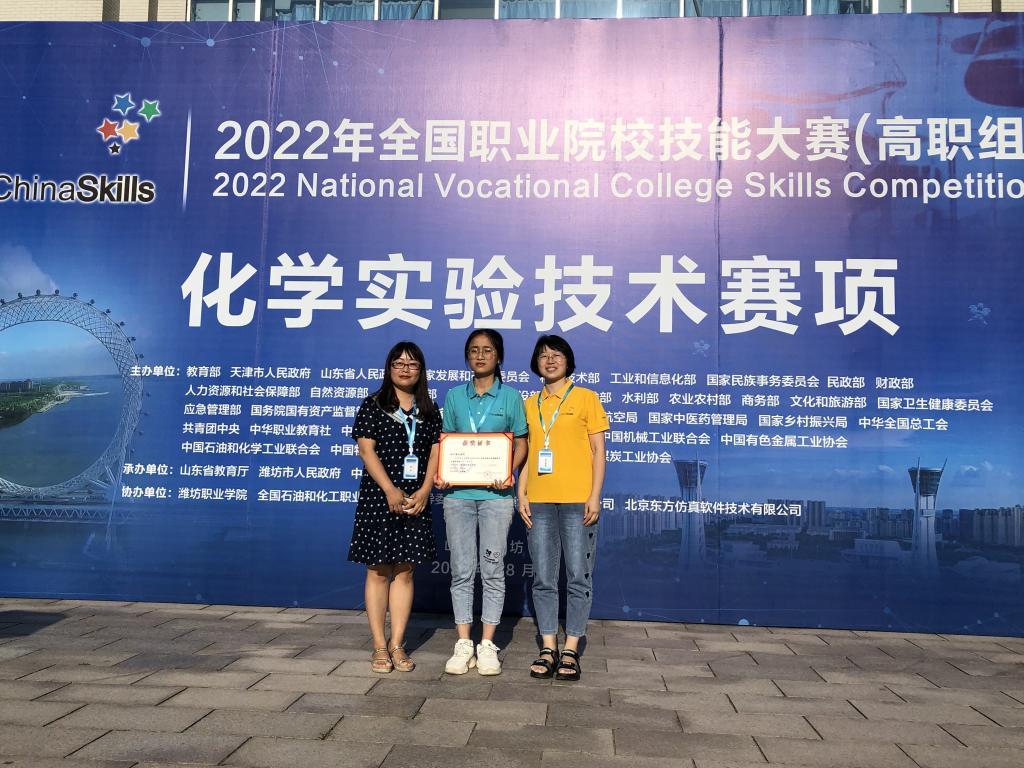 8月15日至16日,教育部主办的2022年全国职业院校技能大赛(高职组)化学实验技术赛项在潍坊职业学院举行,来自全国56所院校的56名选手参赛。我校药学与检验学院2020级药学专业学生邱文心作为四川省代表队选手之一参加比赛,经过两天三个子赛项的激烈角逐,最终斩获三等奖,为四川省在2022年国赛上再添一奖!