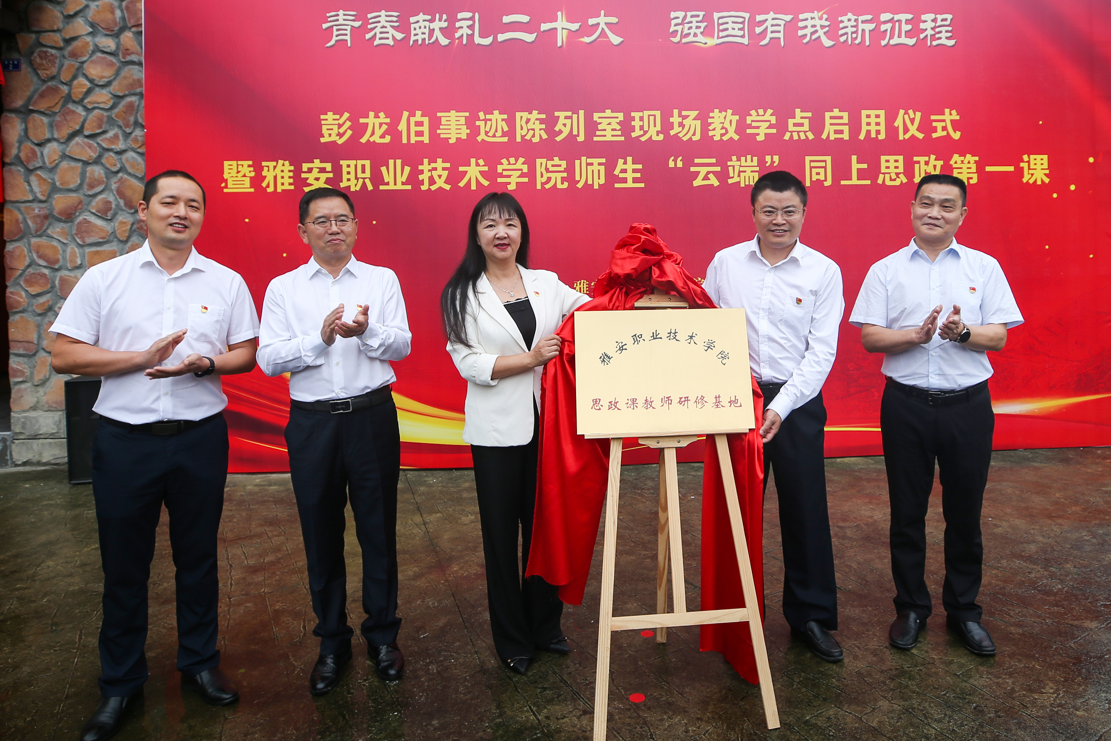 仪式现场,彭龙伯事迹陈列室现场教学点启用仪式和思政课教师研修基地揭牌仪式相继举行。