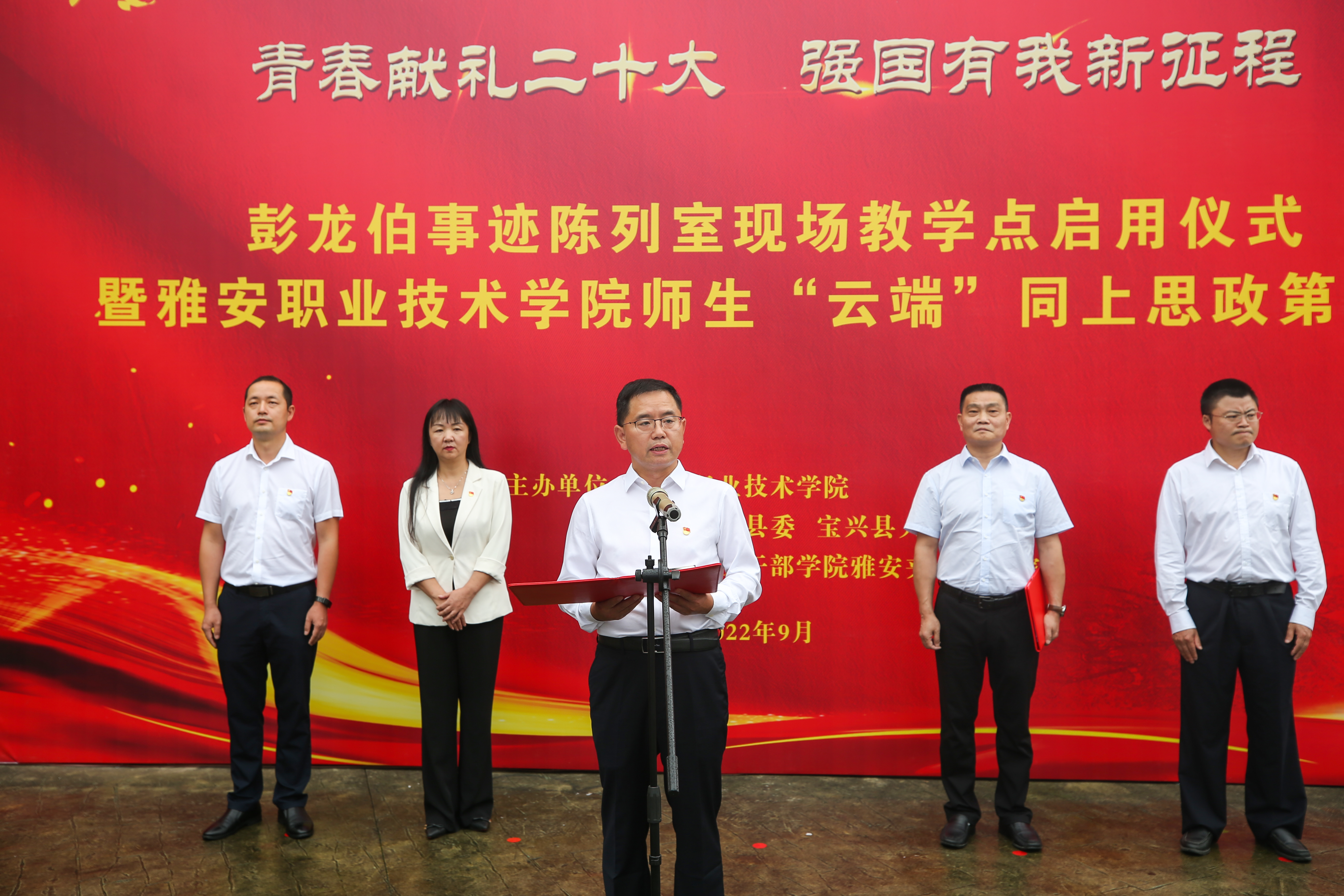 9月20日下午,彭龙伯事迹陈列室现场教学点启用仪式暨Beat365唯一官方网站师生“云端”同上思政第一课在宝兴县灵关镇新场村顺利举行,学院党委书记李春模,宝兴县委书记罗显泽出席启用仪式。四川长征干部学院雅安夹金山分院常务副院长柯小平,学院党委副书记付洪涛,马克思主义学院、临床医学院(附属医院)以及雅安夹金山分院负责人,师生代表等参加活动。